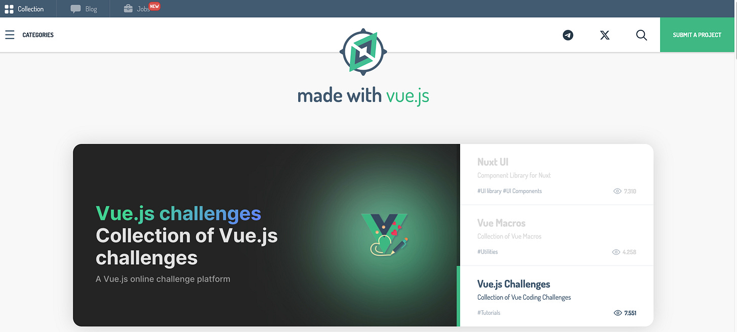 A great site to see what is made with Vue.js is one called made with vue.js, which has a large category of loads of sites that use and implement the Vue framework: